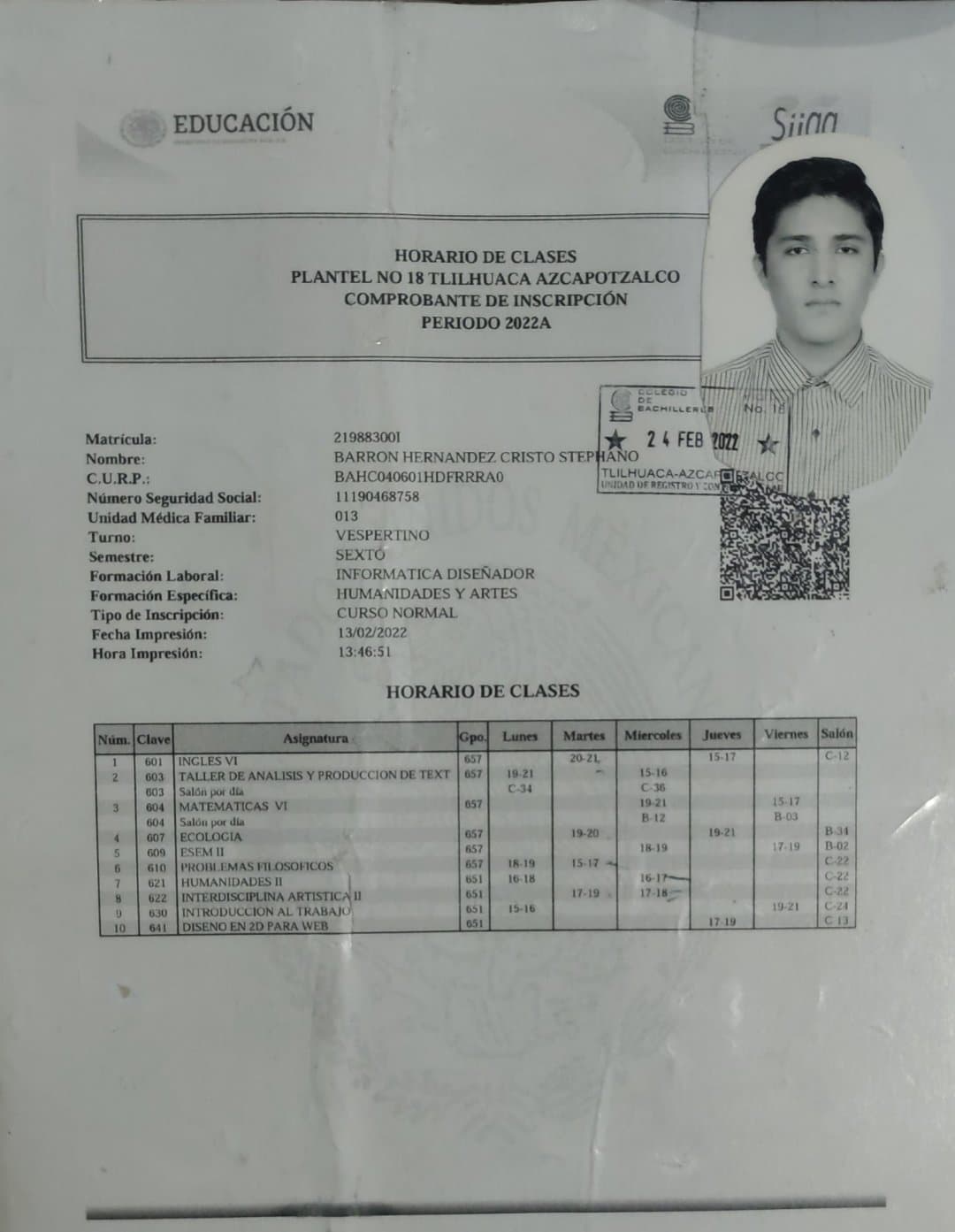 Y bueno pues ahora me encuentro terminando mi bachillerato en donde conocí a muchas personas las cuales la verdad no me imagine tener en mi vida y puedo decir que este año pues no es el mejor pero tampoco es el peor y la verdad no se si me di a entender por que use mis tiras de materia , las use como metáfora de mi vida y de como se ve reflejada en mis cosas y en este caso la tira de materias y bueno les mostrare la que será mi ultima tira de materias del bachilleres 18 lo cual para mi representa un momento donde no estoy ni bien ni mal